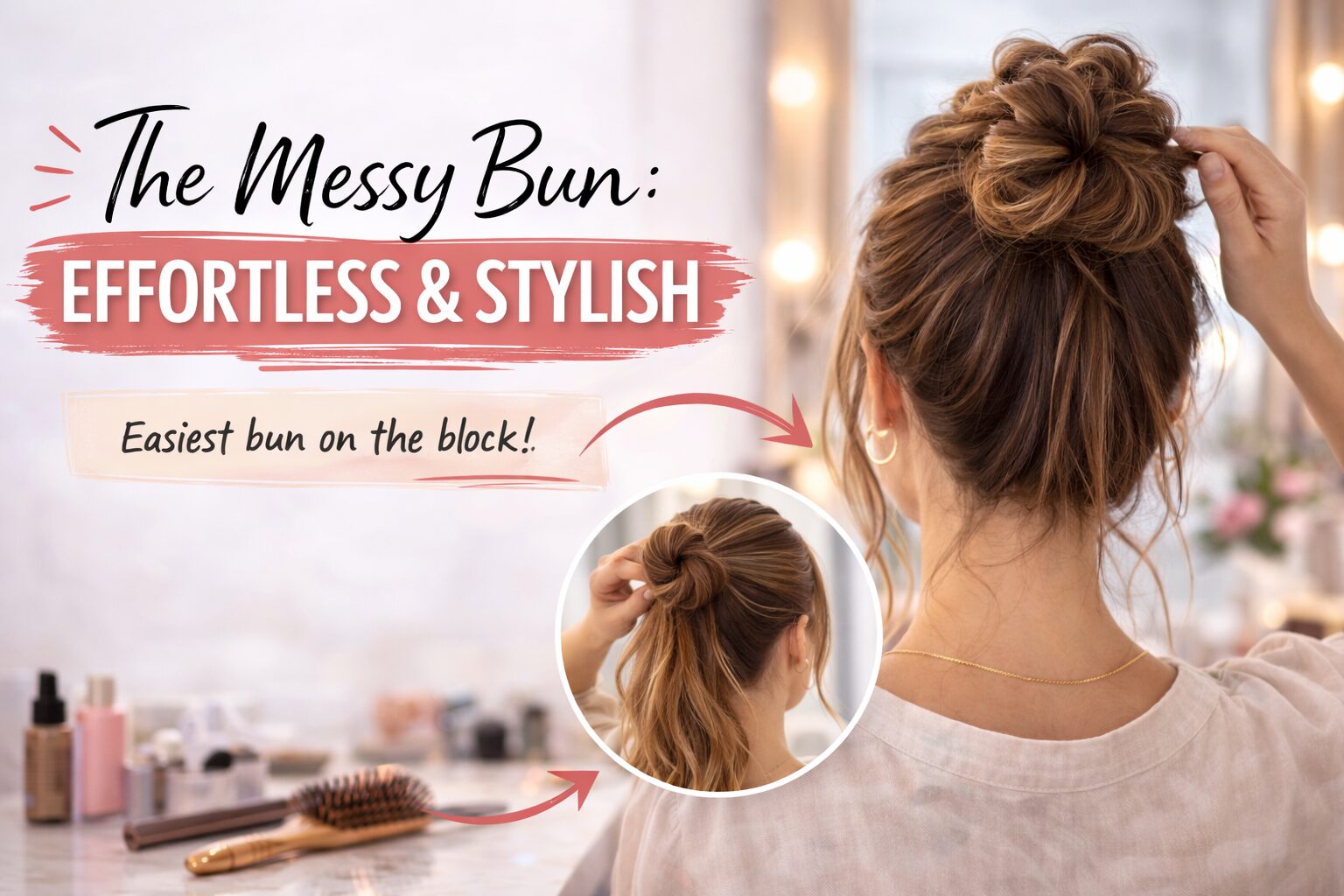 The messy bun is perfect when you’re running out of time. Pull your hair back, twist it into a loose bun, and let the flyaways fall naturally. If you want more volume, tease the crown before tying it.