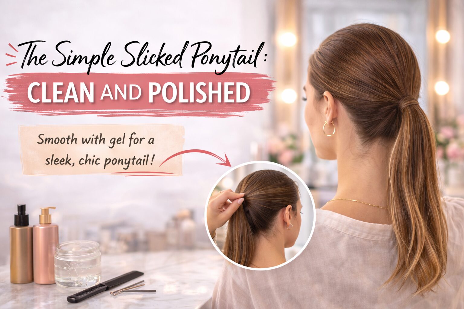 For a professional, slicked ponytail, apply gel or serum to smooth out flyaways, then gather your hair into a low ponytail. This simple, elegant style is perfect for work or interviews.