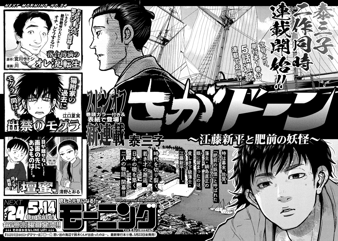 The combined 22nd and 23rd issue of Kodansha's Morning magazine announced on Thursday that Miko Yasu will launch a spinoff to DanDon titled SagaDon in the next issue on May 14.