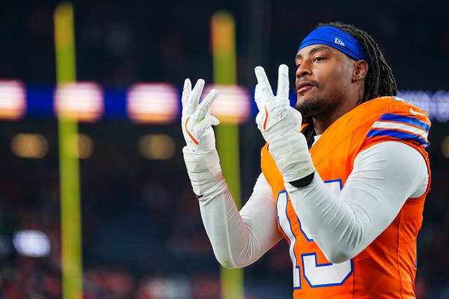 Broncos linebacker Nik Bonitto is a strong candidate for Defensive Player of the Year. He leads the NFL in QB pressures (51) and ranks third with 9.5 sacks despite limited pass rushes. (Photo by Cooper Neill/Getty Images)