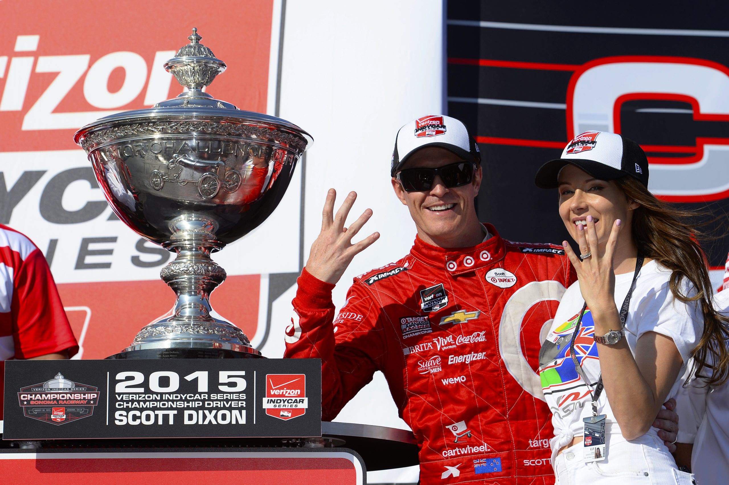 Scott Dixon with his wife, Emma, after winning the 2015 INDYCAR championship. (Photo by Robert Laberge/Getty Images)