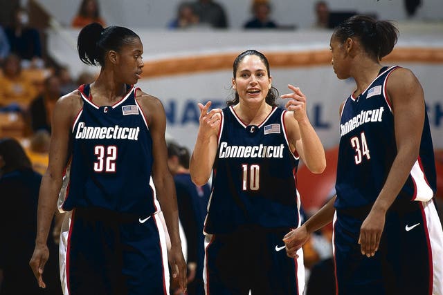 Swin Cash, Sue Bird and Tamika Williams led UConn to championship glory and a then-record win streak. (Photo by Manny Millan/Sports Illustrated via Getty Images)