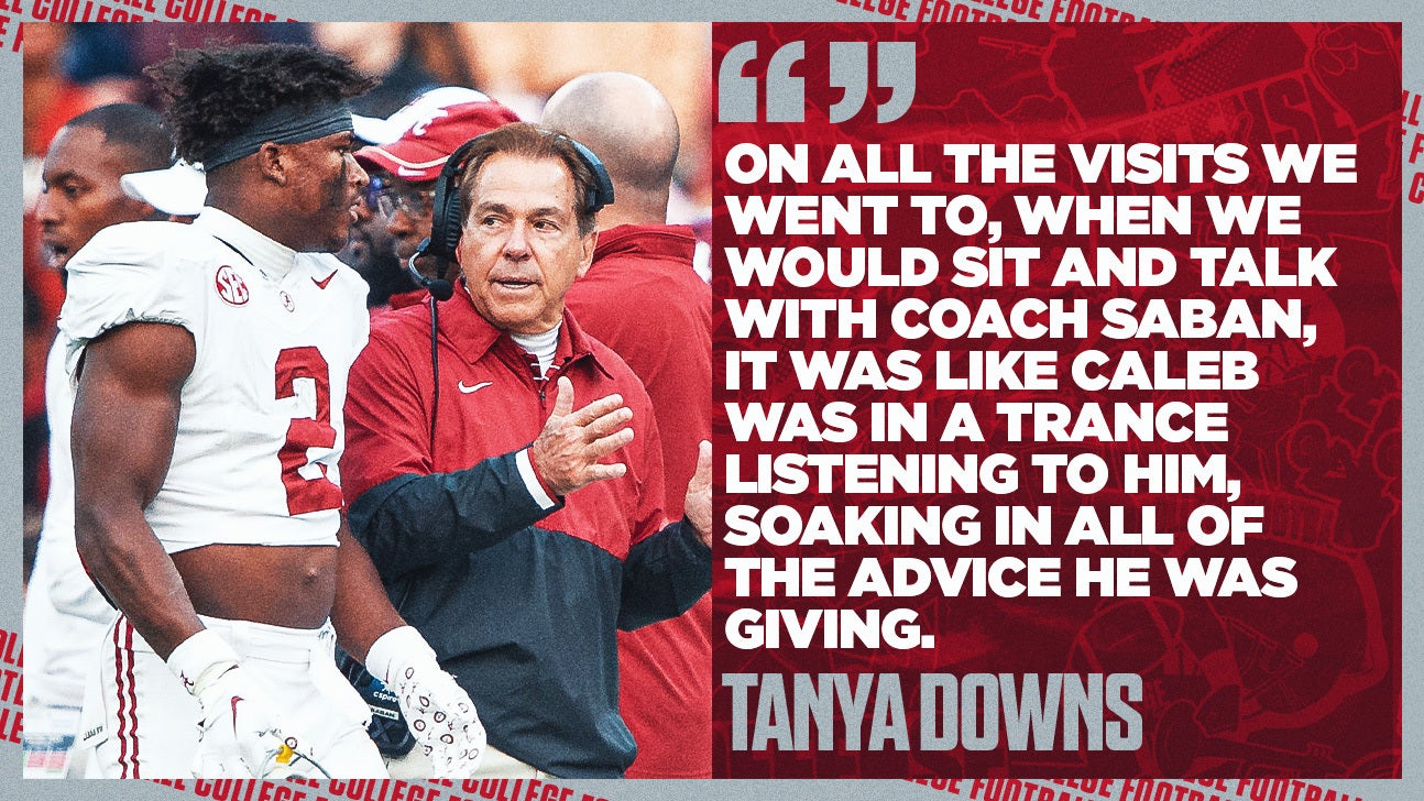 "He was the reason Caleb went to Alabama," Tanya told me. "On all the visits we went to, when we would sit and talk with Coach Saban, it was like Caleb was in a trance listening to him, soaking in all of the advice he was giving.