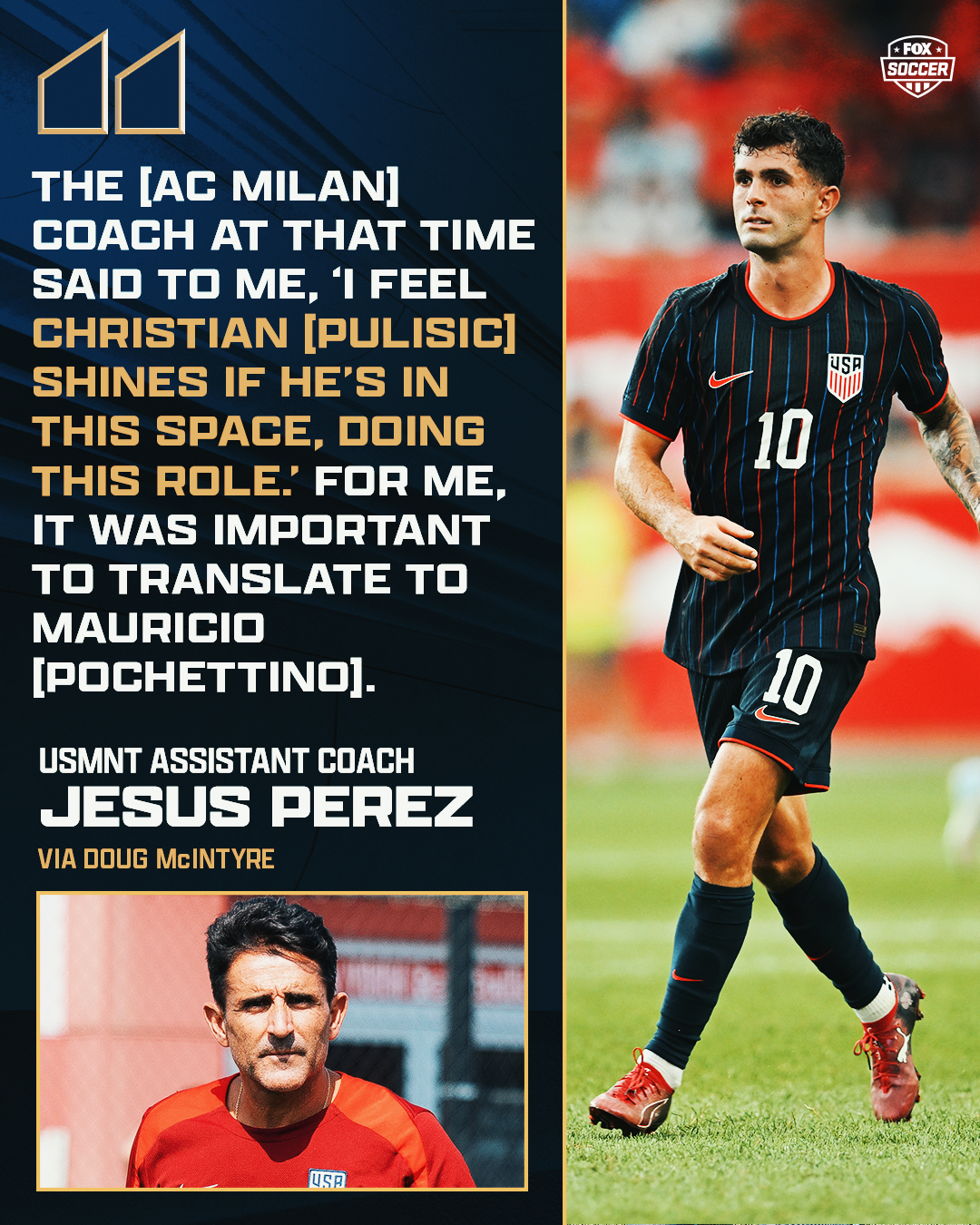 "I remember one conversation in Milan," Perez said. "The [AC Milan] coach at that time said to me, ‘I feel Christian shines if he’s in this space, doing this role.’ For me, it was important to translate to Mauricio.